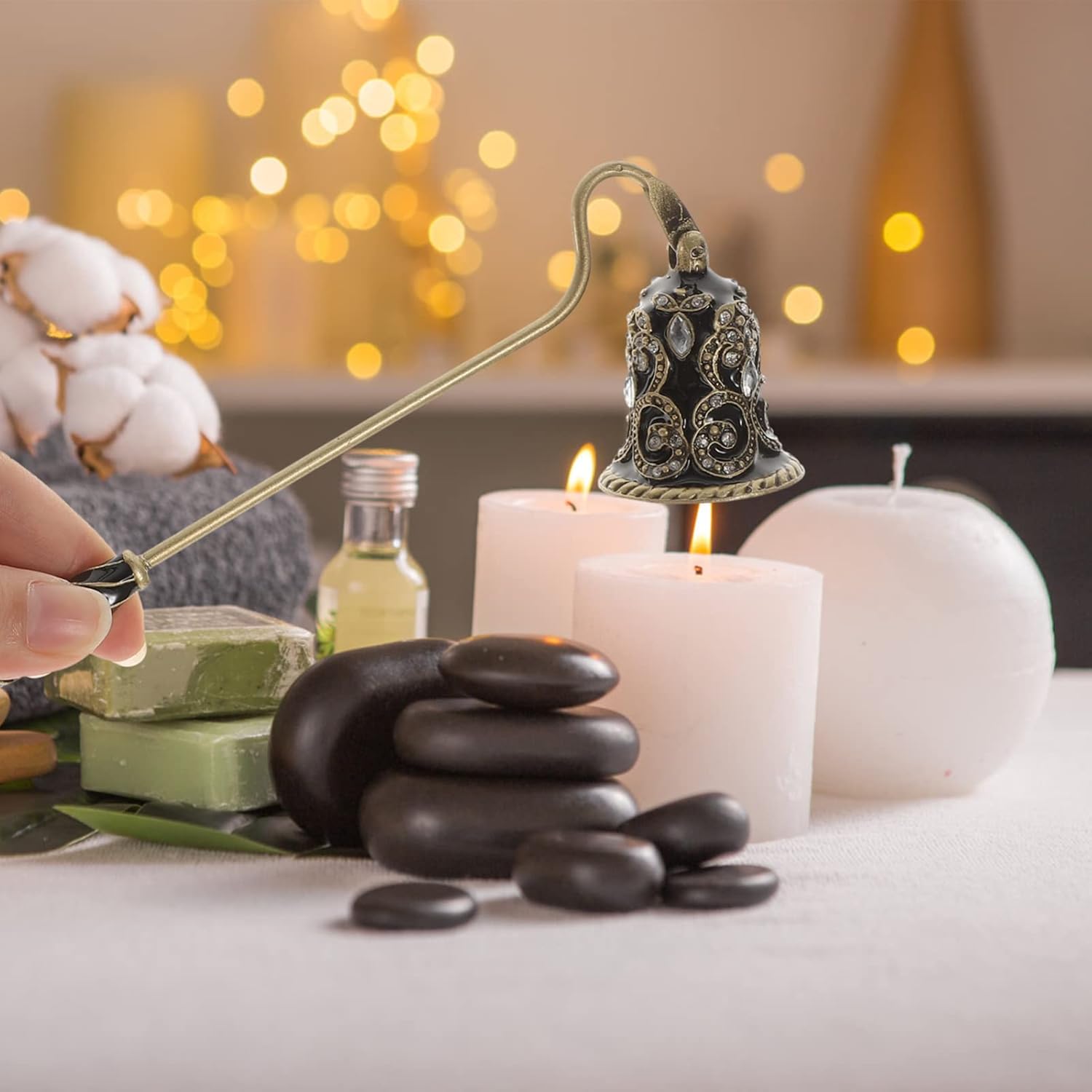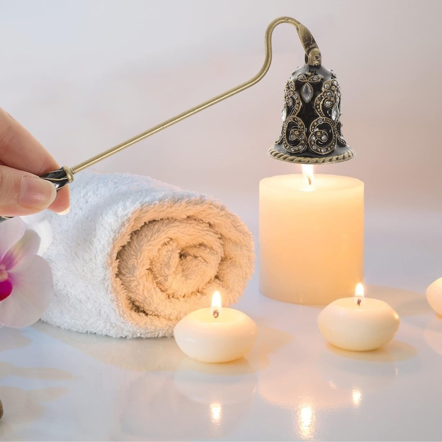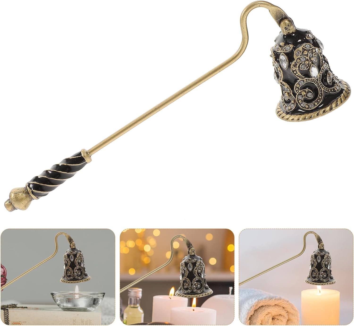 Featuring an elegant rhinestone design, it adds a touch of sophistication to your home decor. Whether you're hosting a gathering, setting up a romantic ambiance, or simply enjoying a cozy night in, this snuffer complements any space beautifully.