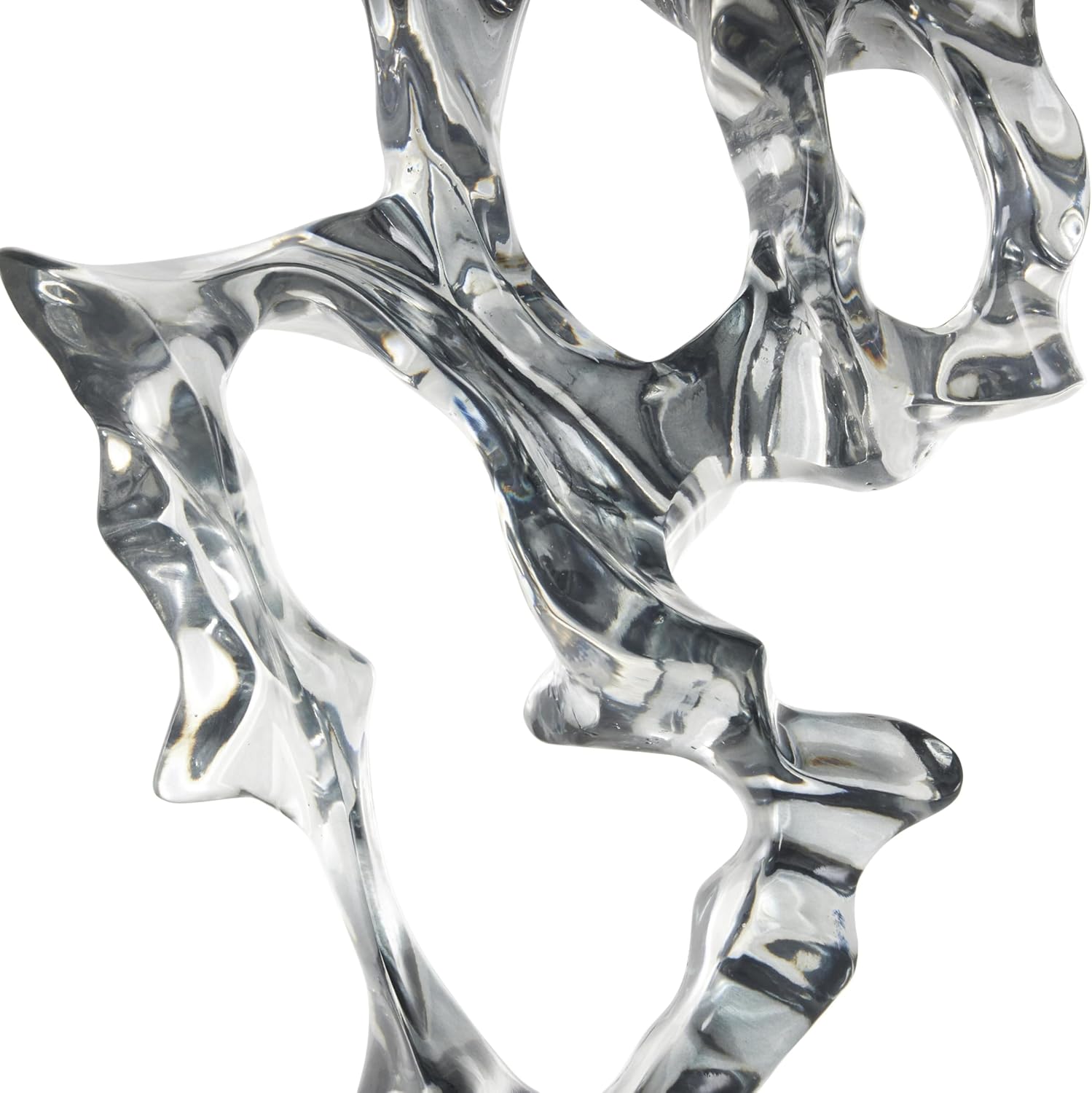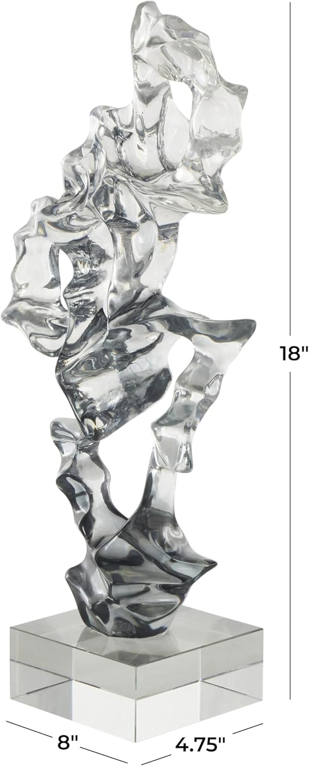 The sculpture is crafted from premium quality glass, featuring a high-gloss finish that transitions beautifully from clear to a subtle smokey gray. This ombre effect creates a dynamic and eye-catching visual, bringing a sophisticated ambiance to your chosen setting. Its large sizeâ8\" x 5\" x 18\"âmakes it a striking centerpiece that draws attention without overwhelming the space.