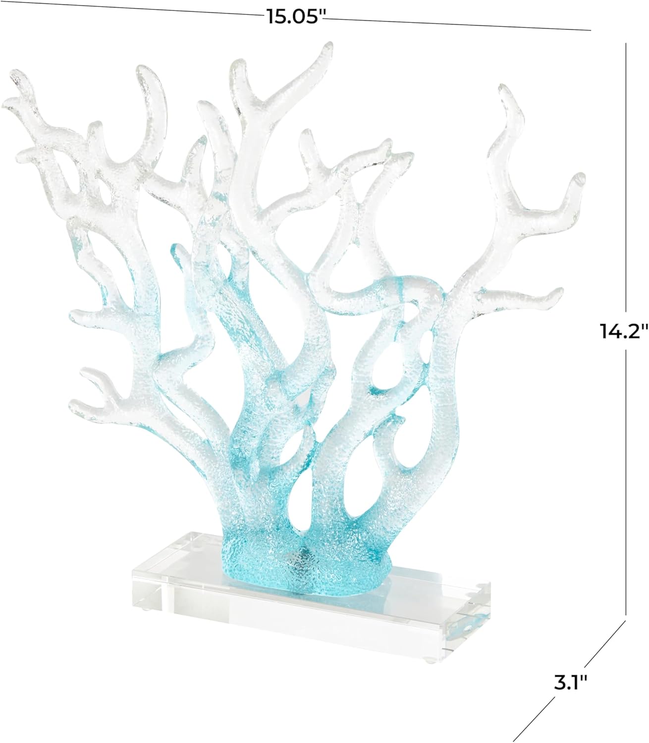 Whether placed on your mantel, shelf, or as a centerpiece, this statue serves as a unique artistic accent that enhances your home decor. Its compact size (15.05" x 3.1" x 14.2") makes it versatile enough to fit into various spaces, from small tables to large displays. The elegant ombre gradient in blue enhances the natural look of the coral, offering a refined and stylish décor option that you'll love to showcase.