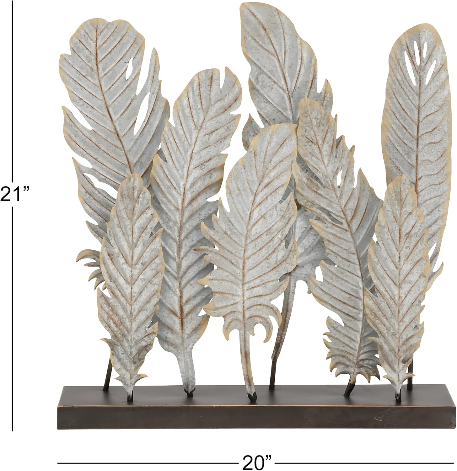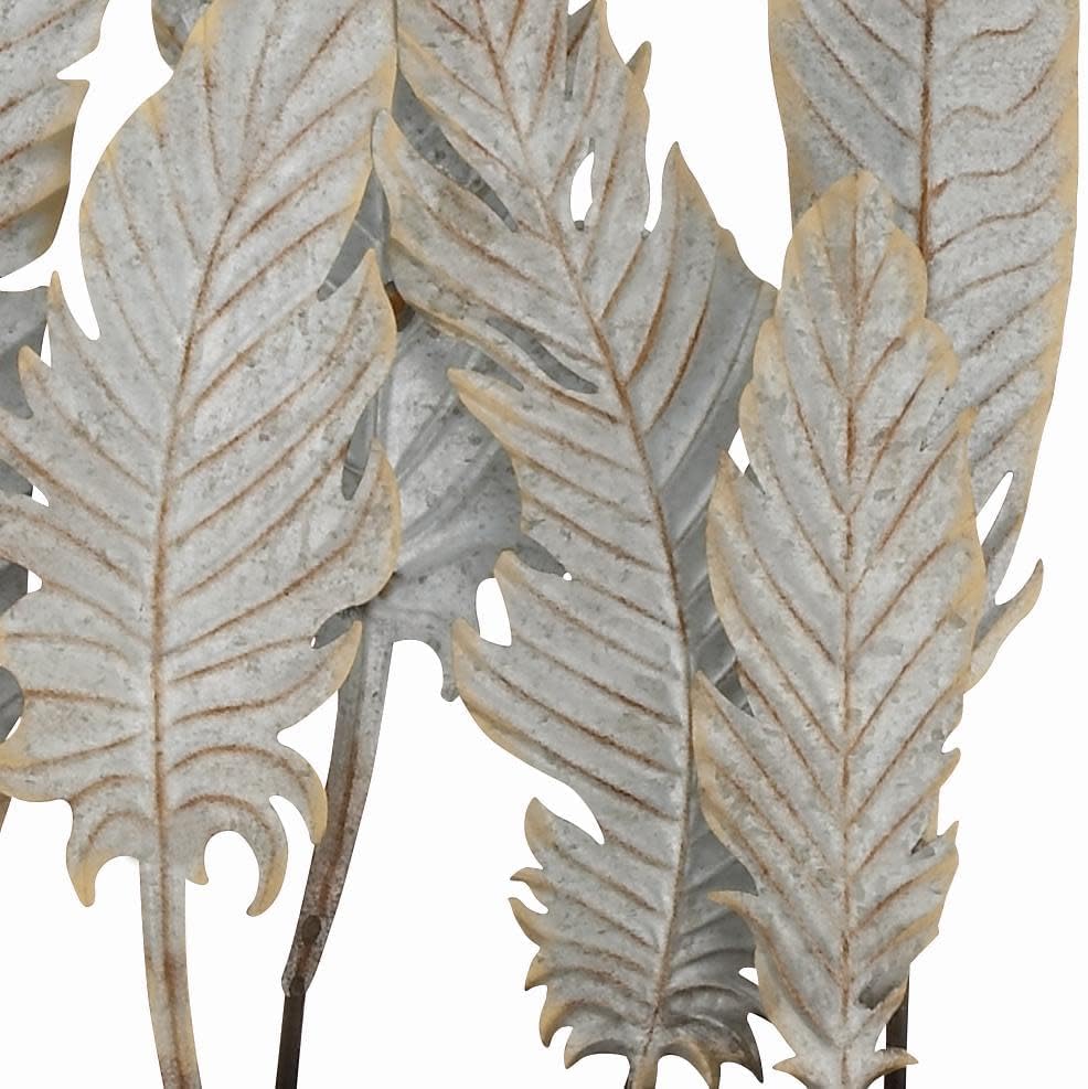 Handcrafted from solid iron, this bird sculpture is built to last. The unique 8 feather-shaped elements are carefully designed to add visual interest and depth, making it a timeless piece for your home decor. The antique distressed white finish gives it a vintage charm that complements both rustic and contemporary spaces.