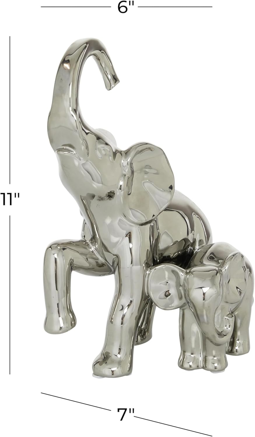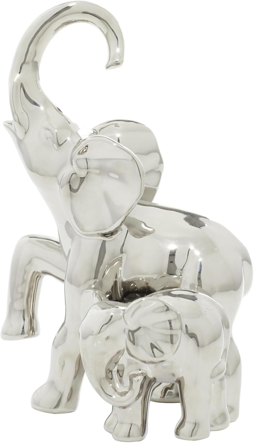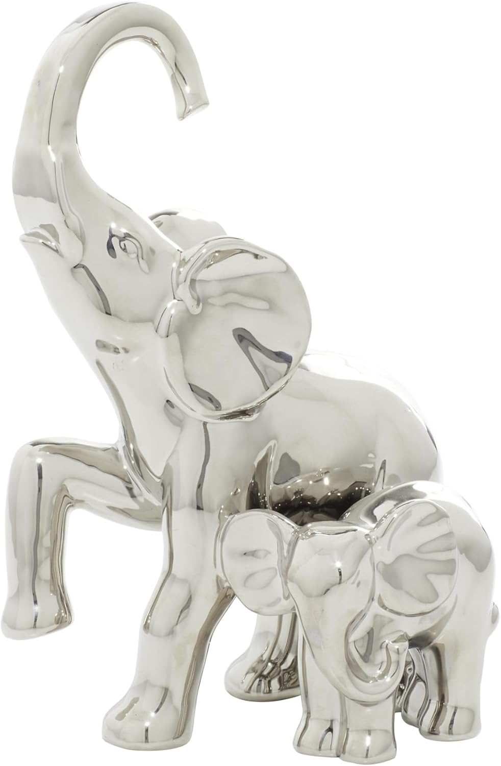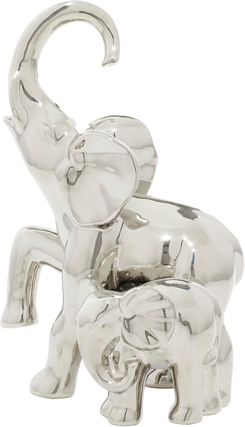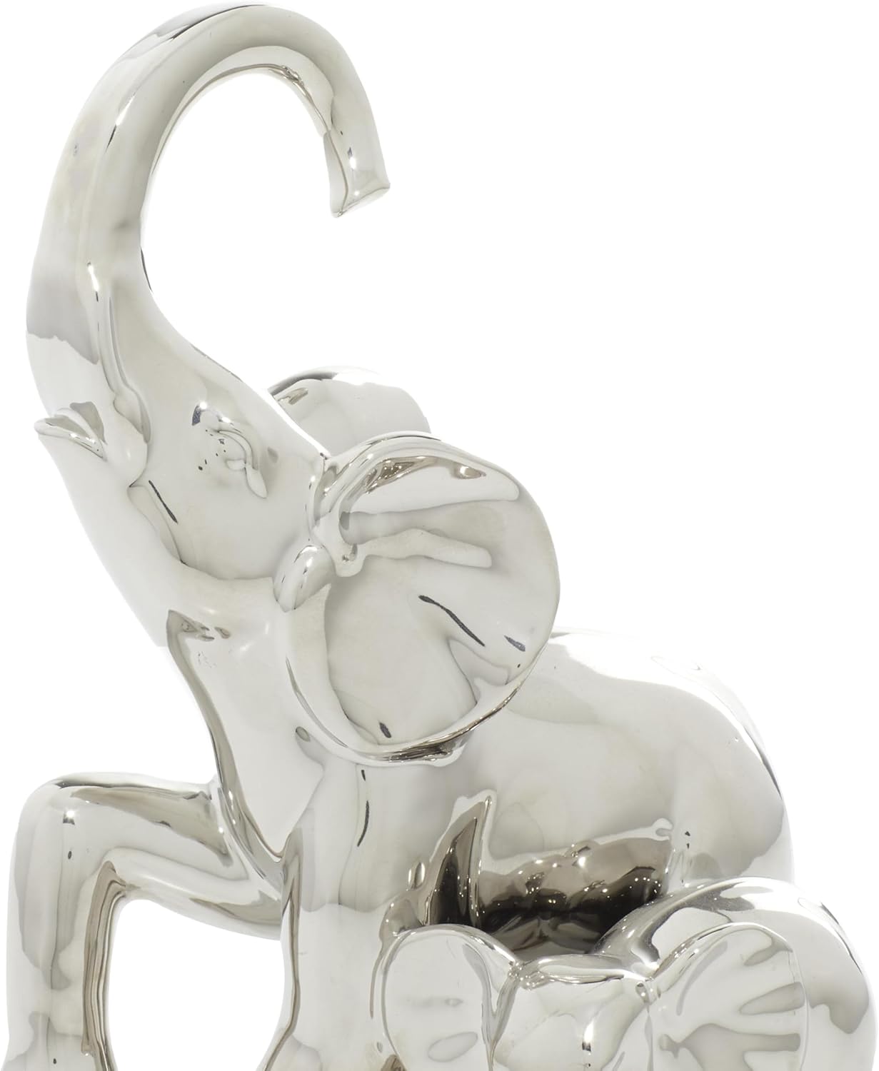 Elevate your home decor with the Deco 79 Silver Elephant Sculpture, a timeless statement that merges sophistication with a touch of playfulness. This unique ceramic piece is meticulously crafted and finished with a dazzling electroplated silver coating, making it a visual masterpiece that complements modern and traditional interiors alike.