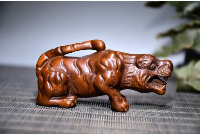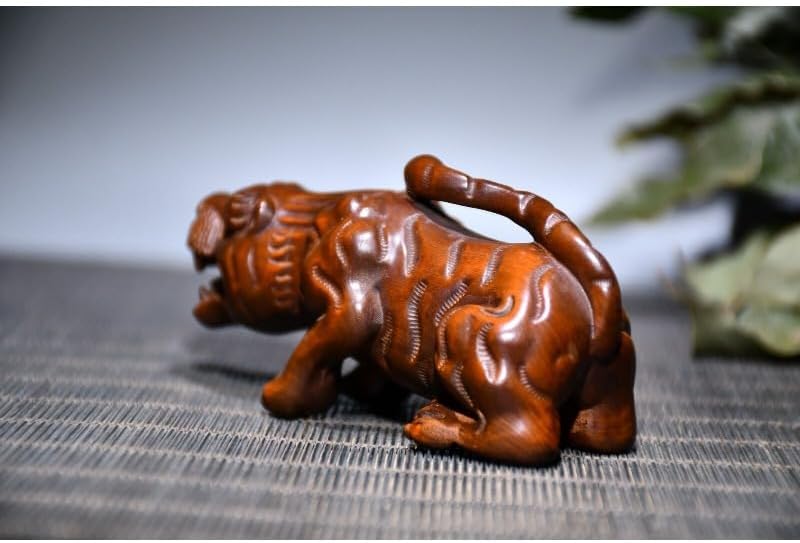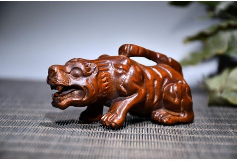 This Boxwood Crouch Tiger Statue is not just a decorative pieceâit's a symbol of strength, grace, and spiritual harmony. Handmade from natural boxwood, it brings a timeless elegance to your living space, whether placed on a mantel, shelf, or side table. The intricate carvings and smooth, organic texture make it a standout item in any room.