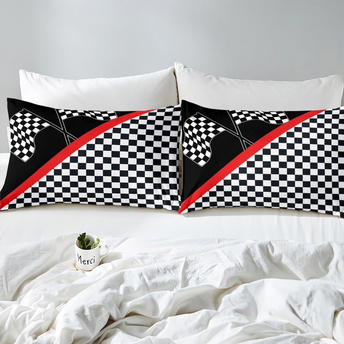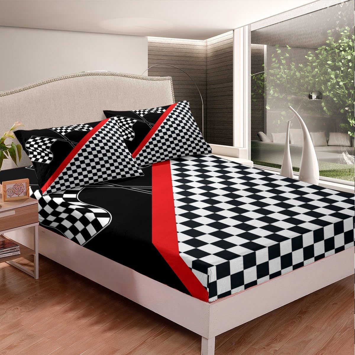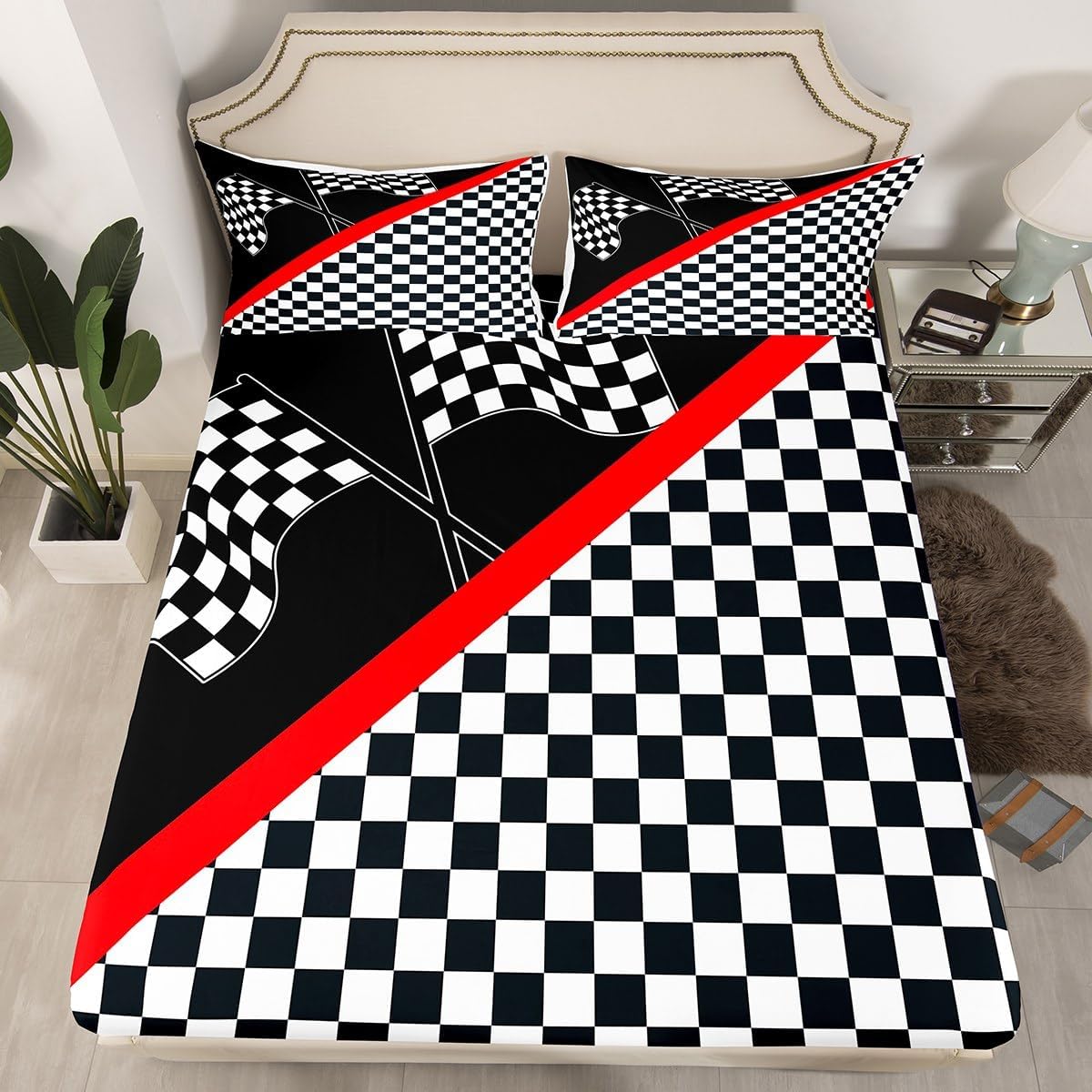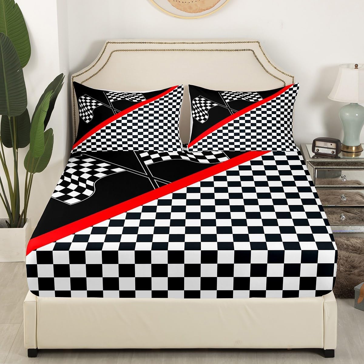 Elevate your bedroom with this stylish and functional racing car theme bedding set. Combining comfort and contemporary design, it features a soft microfiber fabric that ensures a silky smooth feel against your skin, even after repeated use. The deep pocket fitted sheet is engineered for a perfect fit on your mattress, offering hassle-free coverage and a clean, neat appearance. With its bold geometric black and white check pattern, this set brings a sporty and dynamic look to any room, making it a great choice for those who love extreme sports and car-inspired aesthetics. It comes complete with two matching pillowcases, providing a coordinated and cohesive bedding ensemble. Built to last, the set is easy to maintain with machine washable and dryer safe properties, so you can enjoy its softness again and again with minimal effort.Homewish Racing Car Sheet Set with Pillowcases