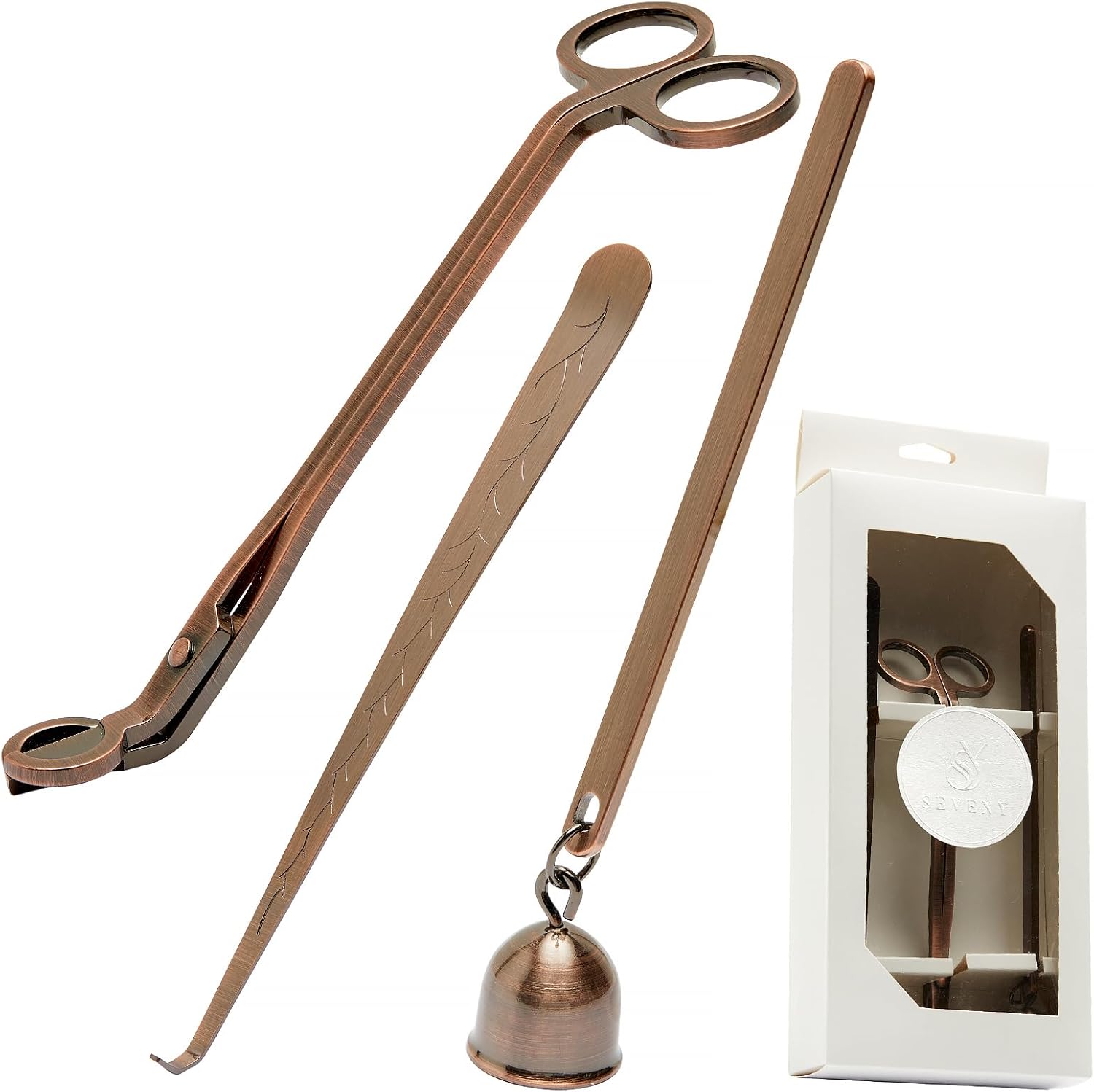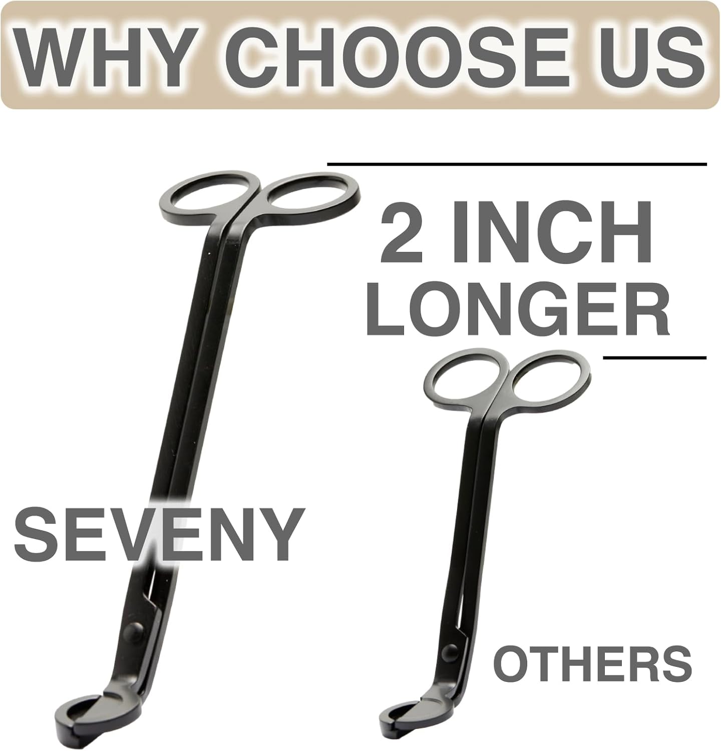 This premium set is designed for candle lovers who want to maximize the lifespan and beauty of their candles. With a combination of polished stainless steel and sleek black paint finish, it offers both durability and a modern aesthetic. The included wick trimmer helps reduce soot and extends burn time, while the snuffer and dipper ensure a safe and clean way to extinguish flames. Whether you're a casual user or an enthusiast, this set makes every candle moment more enjoyable and hassle-free. Whether you're trimming wicks, snuffing flames, or creating custom candles, the SEVENY 3 in 1 set is your essential tool. Itâs more than just accessoriesâitâs an upgrade to your candle routine that brings both quality and style to your home.Enhance Your Candle Experience with the SEVENY 3 in 1 Candle Accessory Set